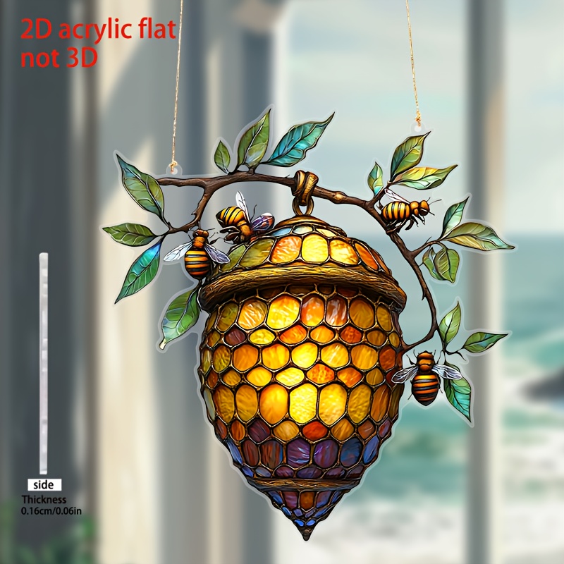 The vibrant beehive and bee design of our acrylic suncatcher is a standout feature that catches the light beautifully, transforming your windows into delightful displays. Made from high-quality acrylic, this suncatcher is durable and designed to withstand the outdoor elements while retaining its stunning appearance.