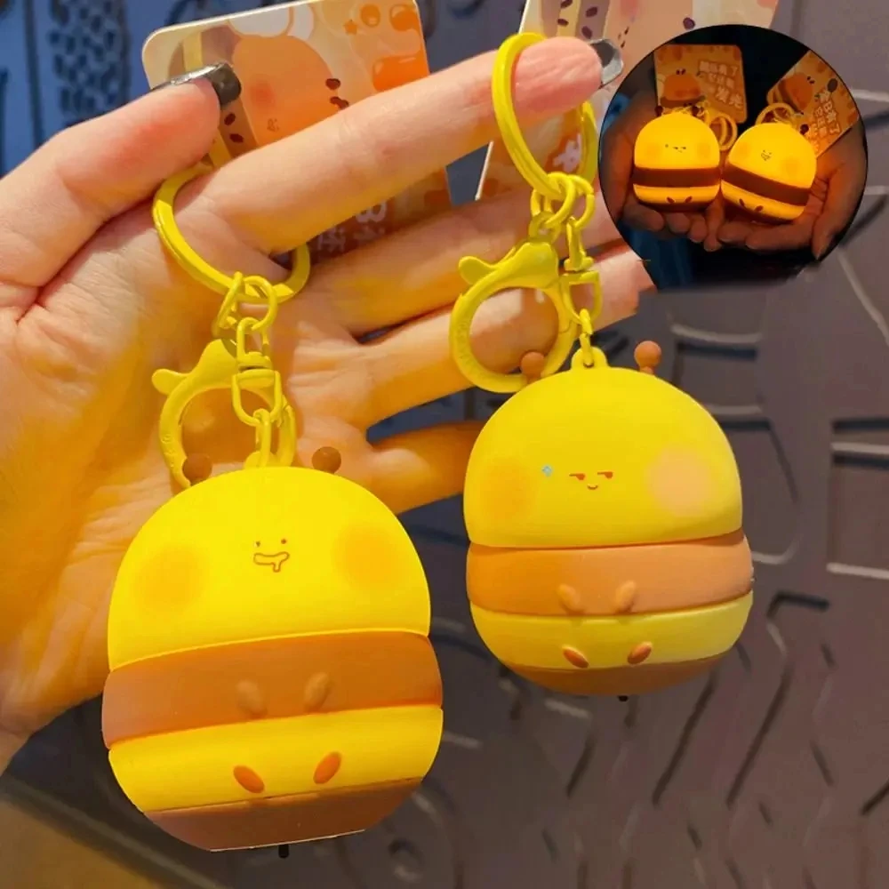 Portable Kawaii Bee Night Light With Keychain Cartoon Honeybee Lamp Car Key RingBag Decor Room nightlight Cute Kid Student Gift