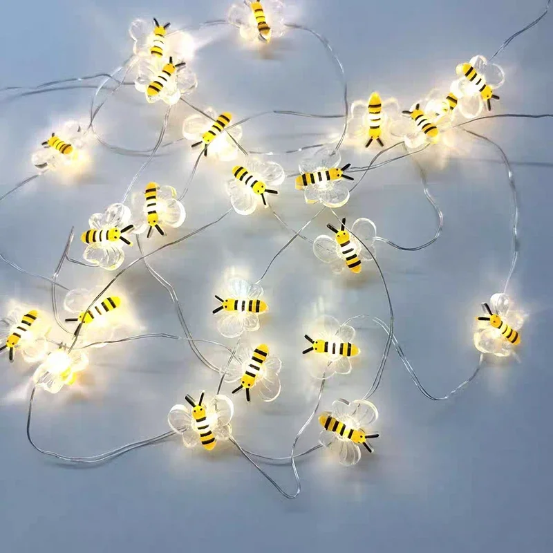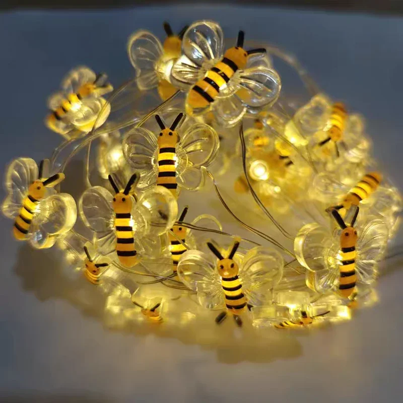 Transform your surroundings with the enchanting glow of the LED Bees Light String. Designed for versatility and elegance, this battery-powered outdoor waterproof fairy garland lamp is the perfect decorative solution for any occasion, whether it's Christmas, a festival, or simply enhancing your garden or bedroom decor.